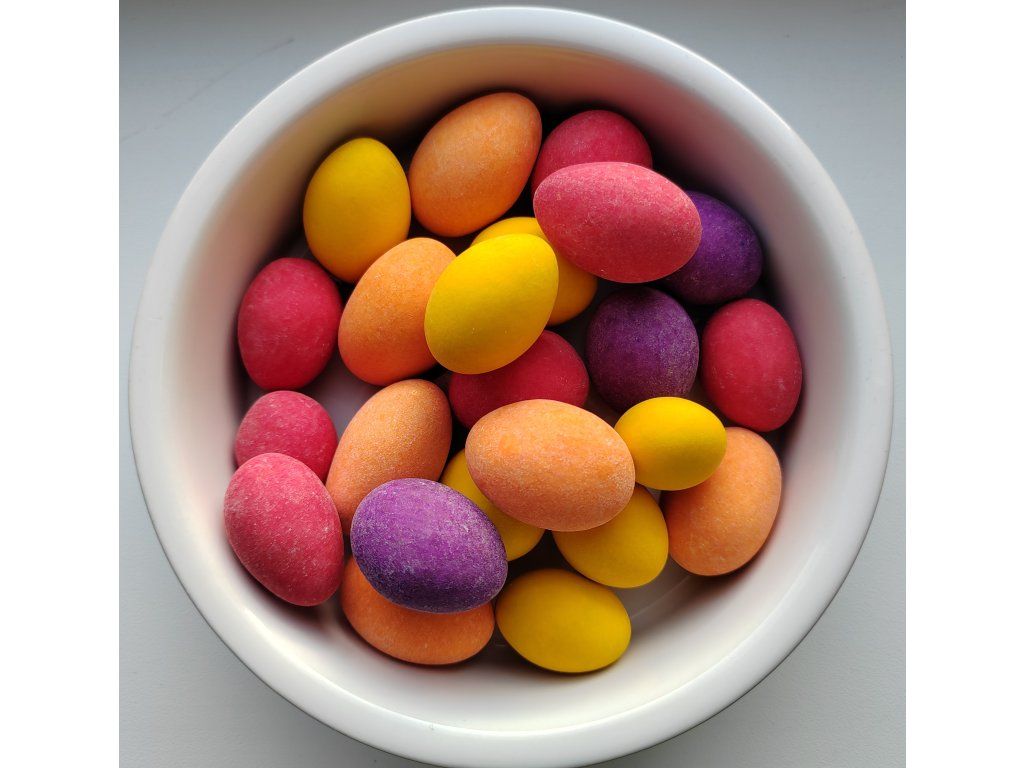 Mandle zalité barevnou čokoládou s citronovým a pomerančovým aroma.